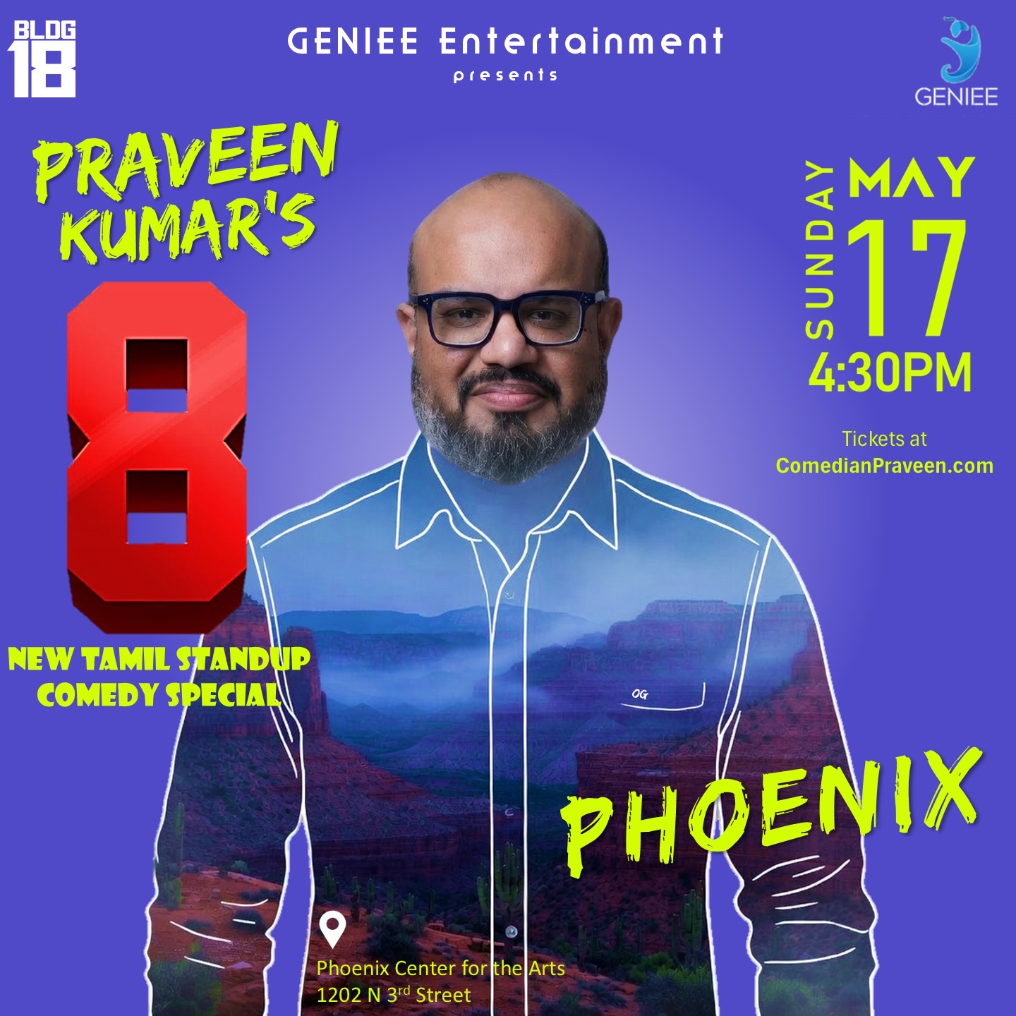 Step into the world of ‘8’ – Praveen Kumar’s 8th stand-up special, inspired by his favorite icon, Superstar Rajinikanth. Just like Rajinikanth divided life into 8 chapters in ‘Baasha’, Praveen takes you on a hilarious journey through 8 stories from 8 distinct stages of his own life. Praveen Kumar is one of India’s leading standup comedians. With 15 million+ views on his YouTube page. He was also seen as a judge on the hit comedy property Comicstaan on Amazon Prime Video. The show is clean and open to the whole family. Admission is allowed only for ages above 7